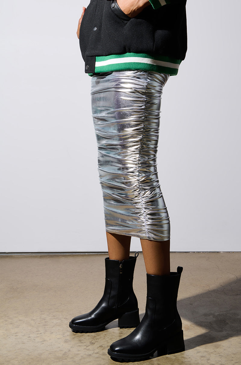Classically chic. The AZALEA WANG Bridgey Black Chunky Bootie features a luxe faux leather upper. a square toe silhouette. a cushioned insole. a mid-calf shaft height. tonal stitching. and an elasticated side slit panel for ideal stretch. Complete with a chunky block heel. a ridged rubber outsole. and an inner ankle zipper closure.