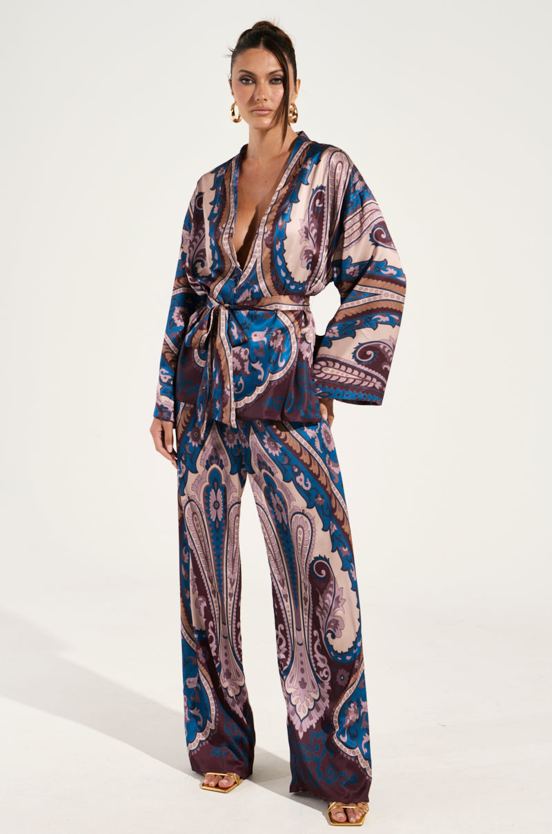 Head in the clouds with The AWNIS Label Dreaming About You Pant. This luxurious bottom is brought to you in a non-stretch satin base and features a floral brocade print throughout. a high rise waist. functional belt loops. side slant front pockets. subtle pleating at the waist. welted back pockets. a button zip front closure. and a flowy. wide leg silhouette. Pair with the coordinating AWNIS Label Dreaming About You Blouse and strappy heels for a dreamy ensemble.