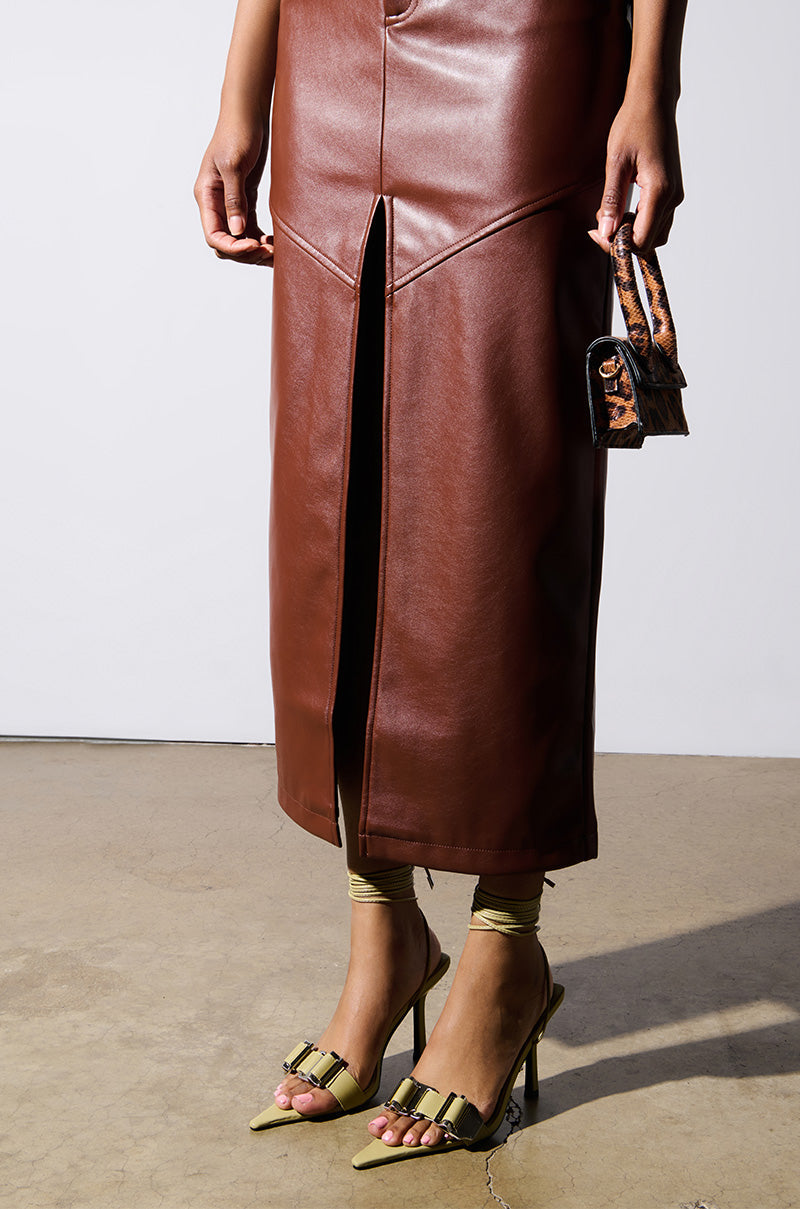 The Ground Work Sage Pointed Toe Silver Hardware Sandal is a sleek style crafted from smooth faux leather in a trendy sage green shade. This strappy sandal features a pointed toe silhouette. stiletto heel. a singular footband with industrial-style silver hardware. and self-tie. wrap-around ankle straps. Style them with a midi dress and a coordinating clutch for a polished look.