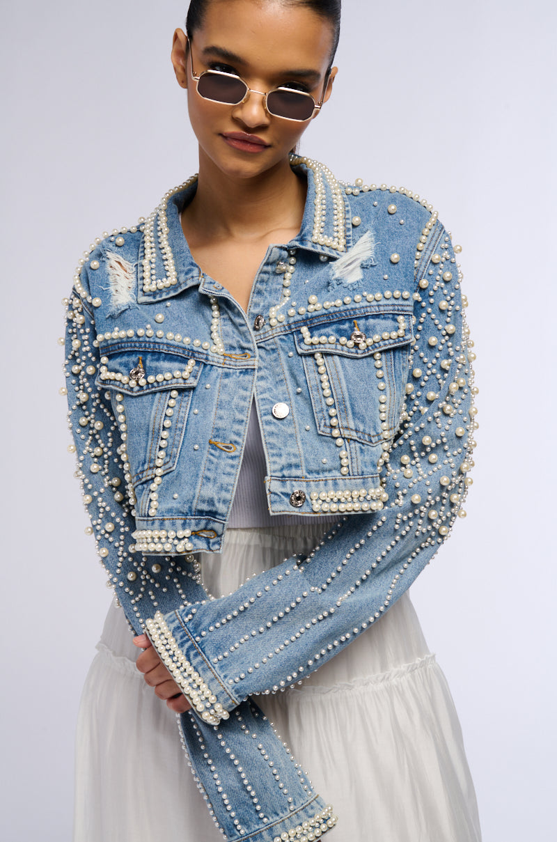 LUCKY YOU CROPPED PEARL DENIM JACKET