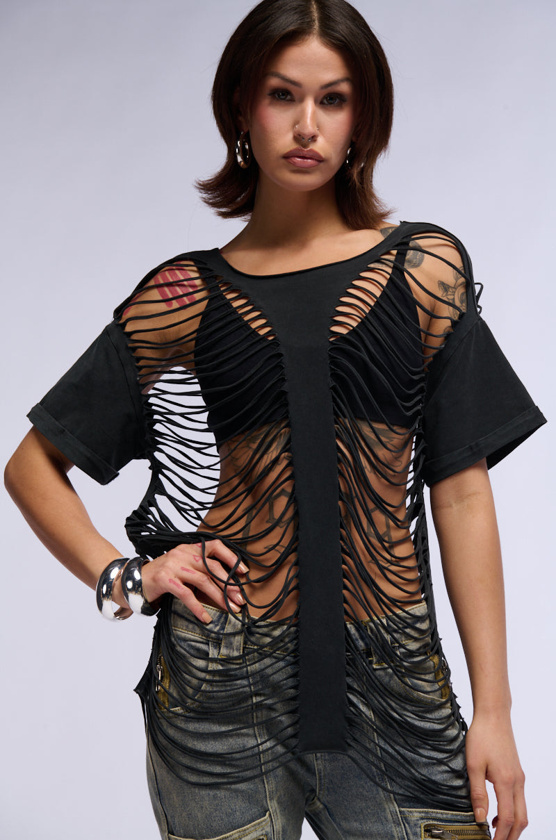 REZA DISTRESSED OVERSIZED T SHIRT IN GREY