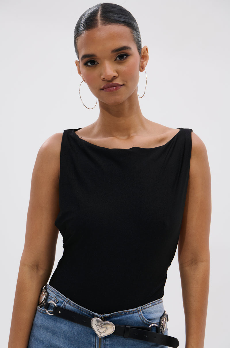 Keep it simple and chic in The AKIRA Label Sexy Open-Side Bodysuit. This versatile. understated one-piece is crafted from a sleek. stretchy fabric and features a sleeveless. curve-skimming silhouette. flattering boat neckline. and skin-baring side cut-outs that span from shoulder to hip. Complete with smooth inner lining and a snap-gusset closure.