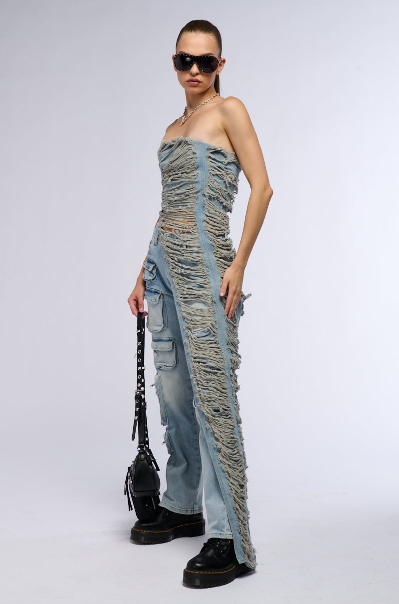 TAKE ME DOWN DISTRESSED DENIM TOP