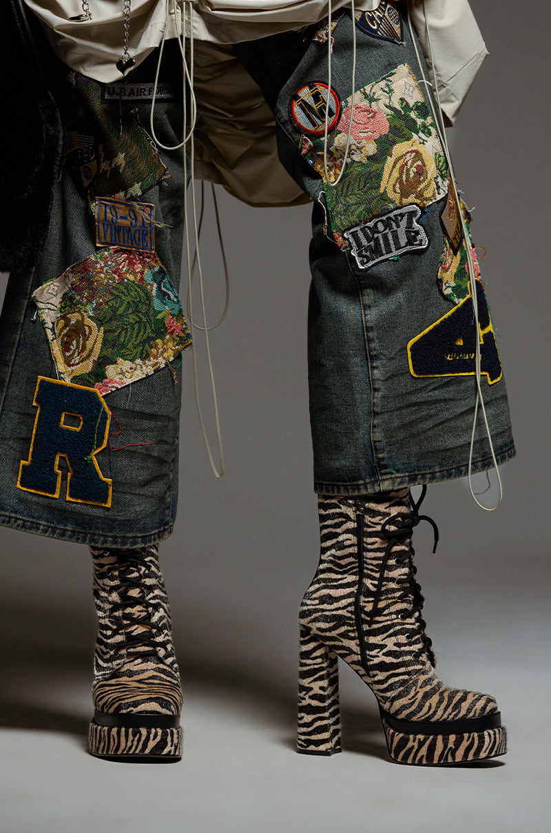 Giddyup. zebra girl. The AZALEA WANG Redford Multi Platform Pony Hair Zebra Bootie features a textured faux pony hair textile upper. classic zebra patterning. a rounded square toe. a towering chunky heel. a stacked platform sole. and faux leather striped accents. Complete with a classic lace-up vamp. a textured rubber outsole. and handy back pull tab accents. Style with high rise denim shorts and zebra print accessories for a funky ensemble.